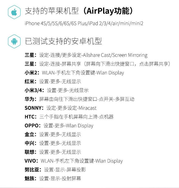 區別:市面上絕大多數設備是不能自適應選擇投屏方式的,因為它們只支持Miracast同屏協議,奇機-X10無線同屏器可以自適應這就是優勢。