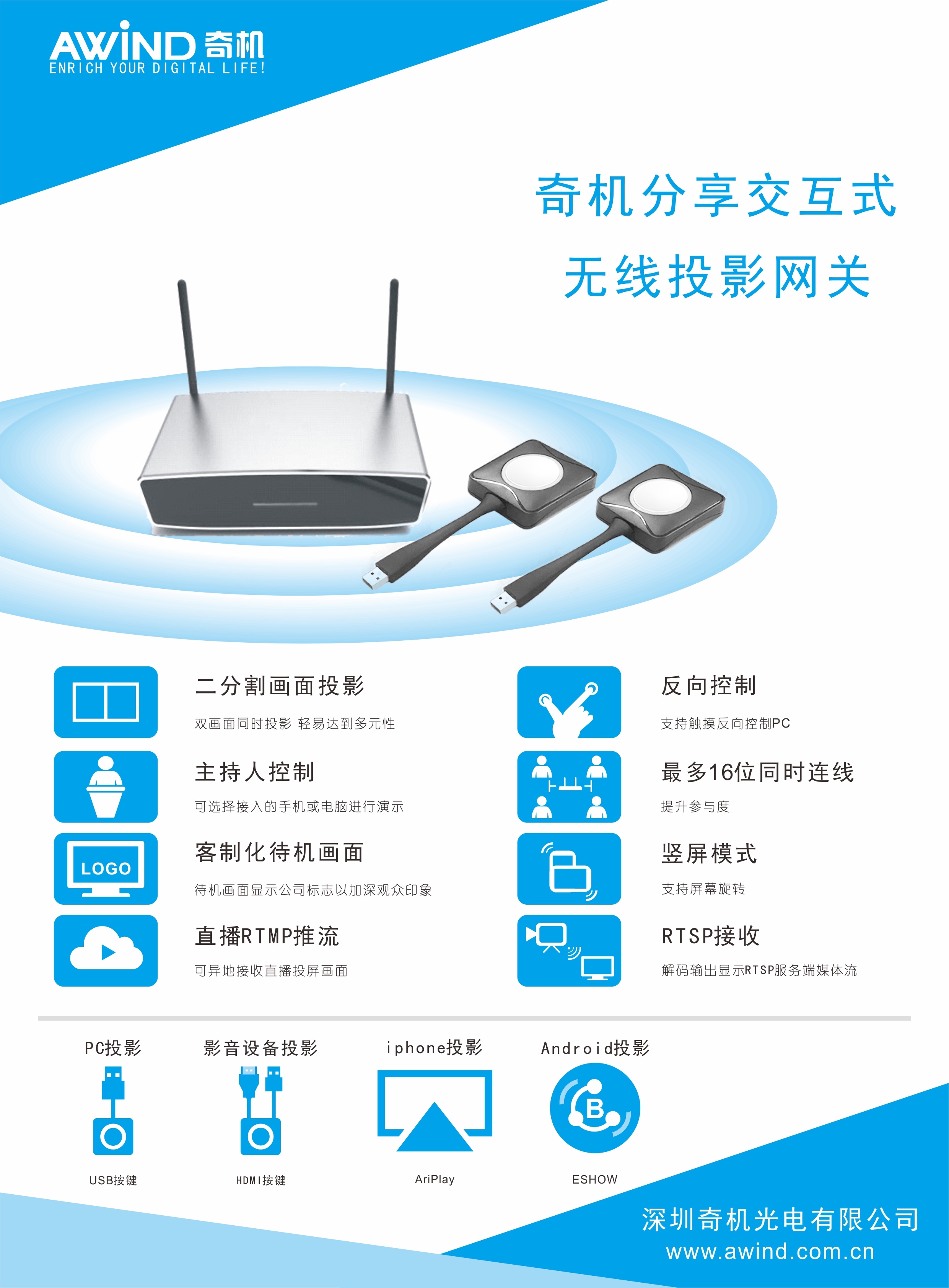 支持智能手機無線投屏