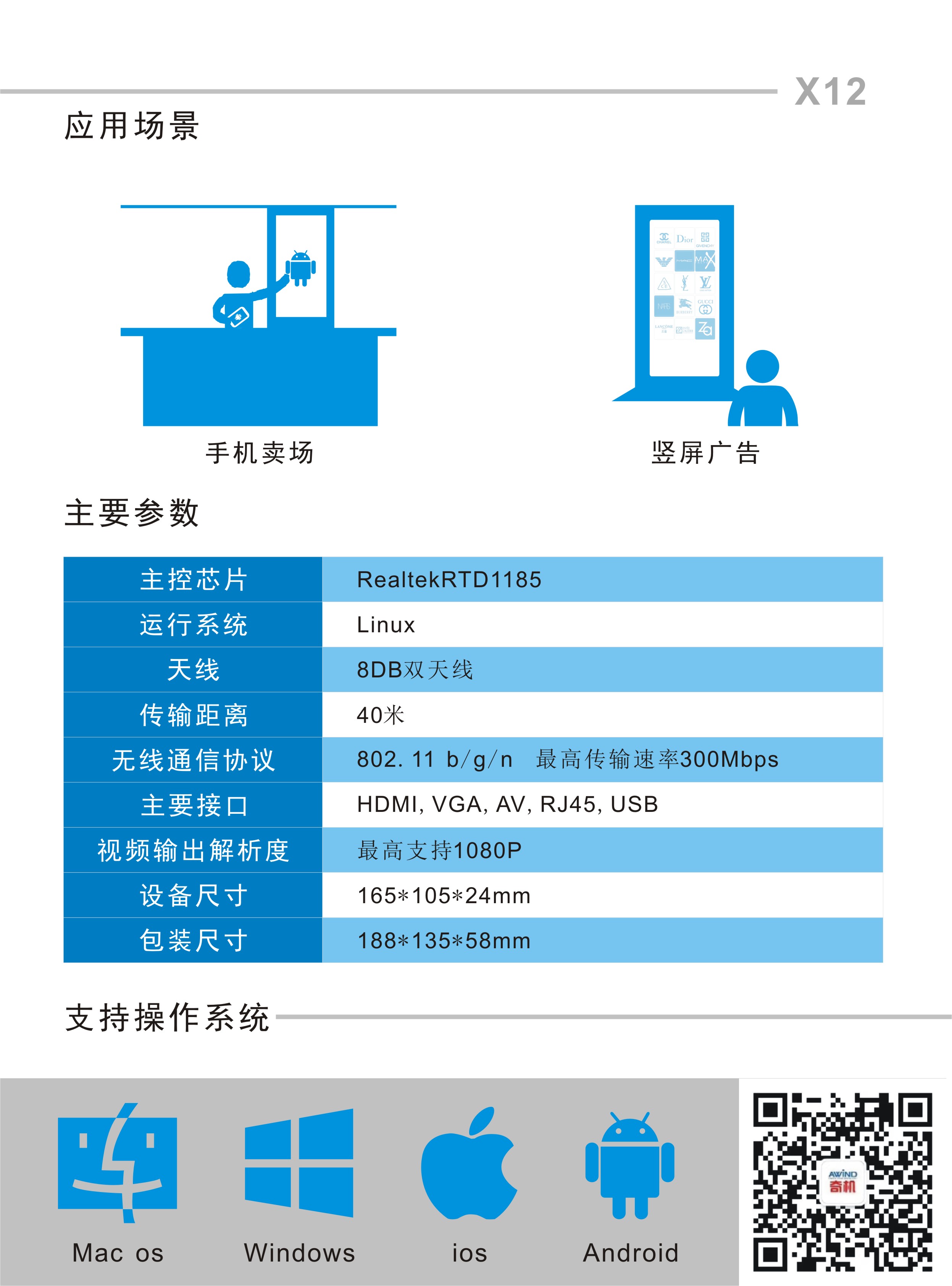 Awind奇機X12手機豎屏無線同屏器 2.4G和5G雙頻支持安卓Miracast、蘋果Airplay