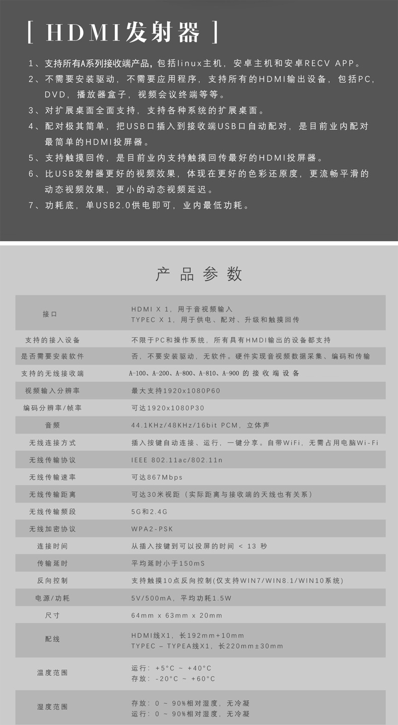 通過此接口供電、音視頻傳輸、配對、升級和觸摸回傳