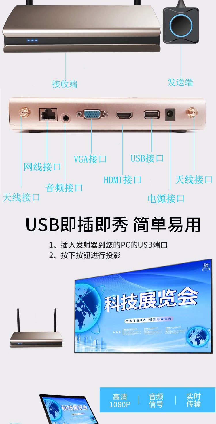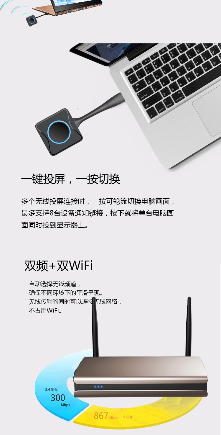 AWiND奇機無線會議投屏A-810+一鍵聯無線投屏手機平板電腦一對多無線投屏器