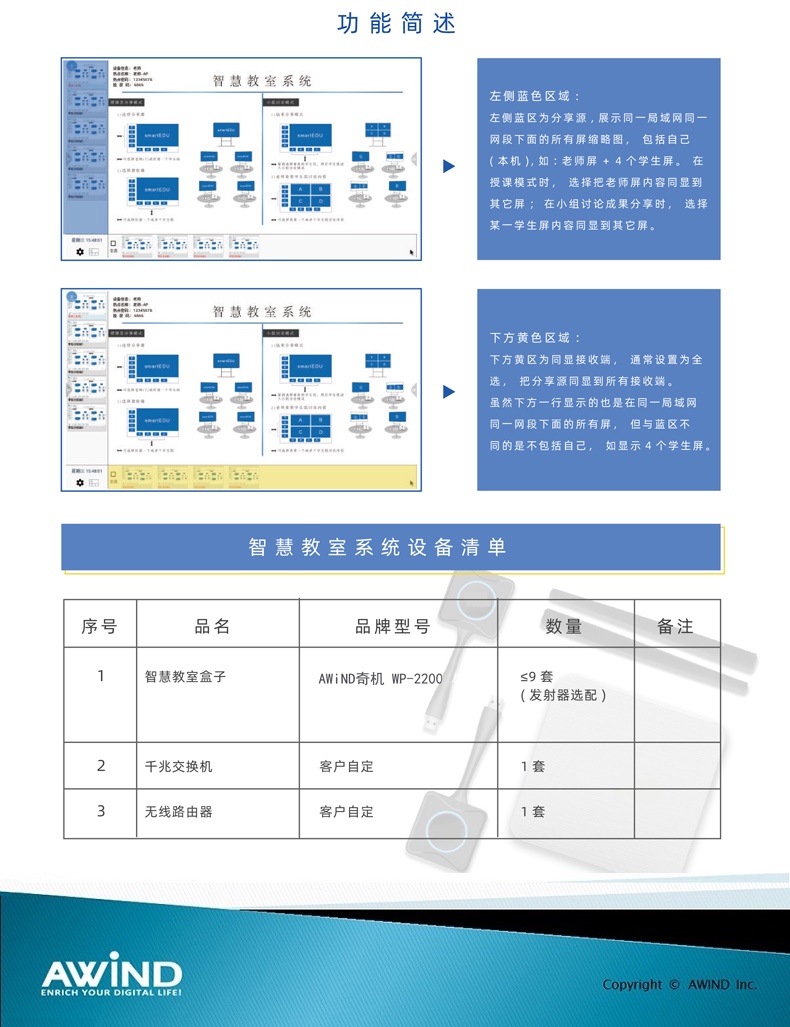 面對這個需求,AWIND奇機給三位老師推薦了我們的《奇機智慧教室smart方案》,也就是教師能夠在大屏幕上進行手寫、批注等功能,同時還能與學生組屏幕進行一個交互。期間我們能感覺到,幾位老師是希望直接將老師在大屏幕上的內容廣播到學生的PAD上。